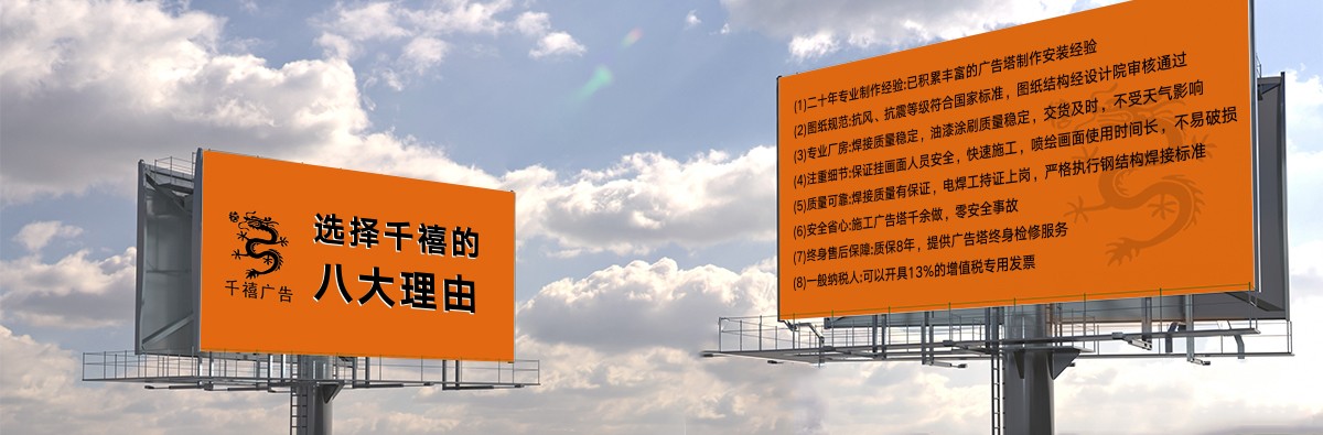 世紀(jì)之交,石家莊千禧廣告裝飾有限公司(下方簡(jiǎn)稱(chēng)千禧廣告公司或公司)自2000年10月10日創(chuàng)立伊始,即在燕趙大地落地生根,成長(zhǎng)為國(guó)內(nèi)擁有23年施工經(jīng)驗(yàn)的實(shí)體型戶(hù)外廣告設(shè)施制作工廠(chǎng)。公司集新品研發(fā)、結(jié)構(gòu)設(shè)計(jì)、生產(chǎn)制作、施工建造于一體,現(xiàn)代化生產(chǎn)廠(chǎng)房為大中型高炮廣告牌(又稱(chēng)高炮廣告塔、單立柱廣告牌、單立柱廣告塔、擎天柱廣告塔、擎天柱廣告牌)、龍門(mén)架、三面翻鋼結(jié)構(gòu)、LED廣告屏鋼結(jié)構(gòu)等的精益生產(chǎn)、高效流水化作業(yè),產(chǎn)品交工質(zhì)量過(guò)硬,公司擁有現(xiàn)代化生產(chǎn)車(chē)間,配備了不可或缺的硬件裝備。